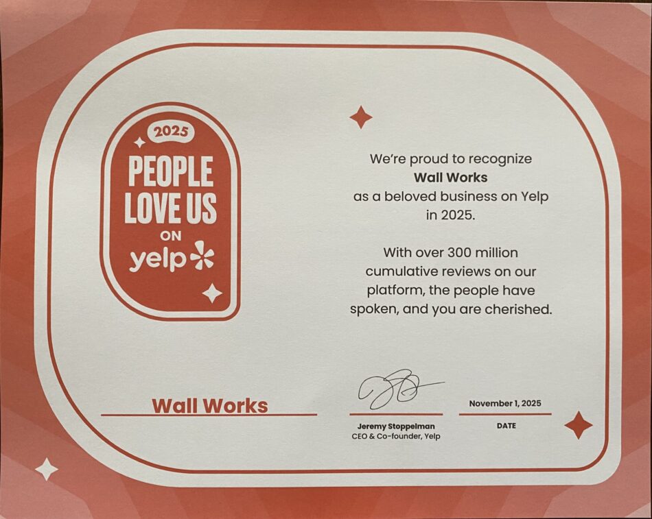We’re beyond excited to share that Wall Works has been recognized with the “People Love Us on Yelp” award for 2025 — two years in a row! 🏆